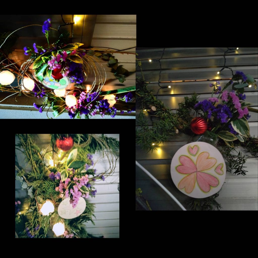 施設内はクリスマスの飾り付けで華やか。温かな雰囲気が漂う中で利用者様と介護士様の共同制作で素敵な作品が揃いました!