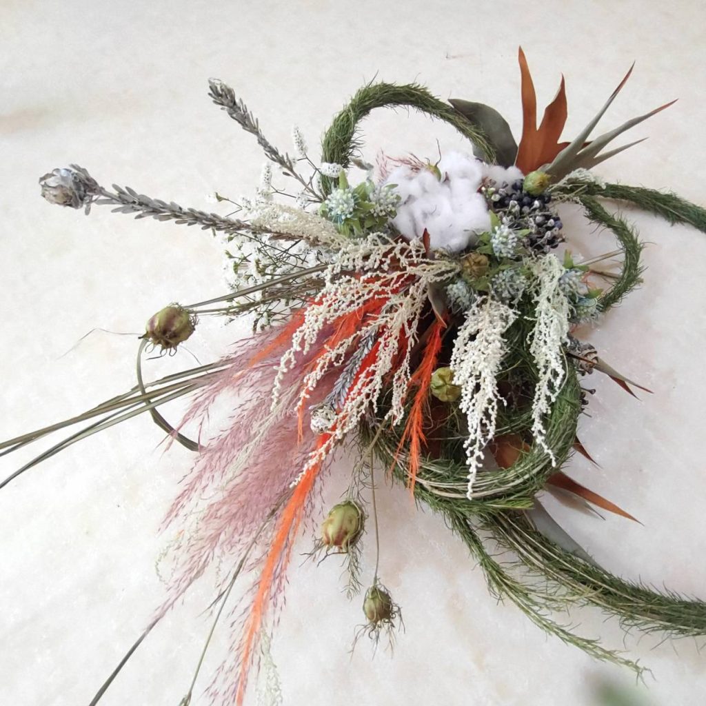 それぞれ角度を付けて組み合わせているので、花材を付ける箇所が沢山あります。