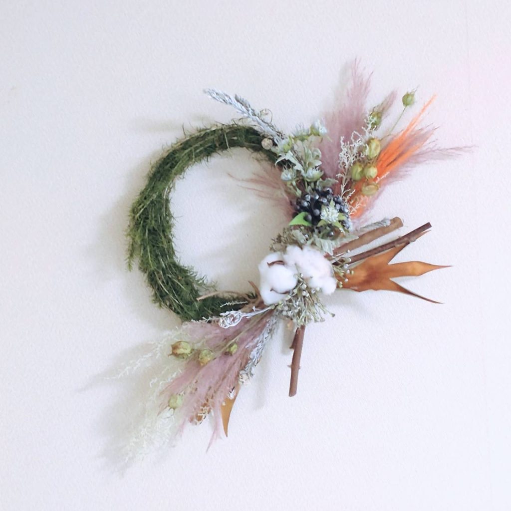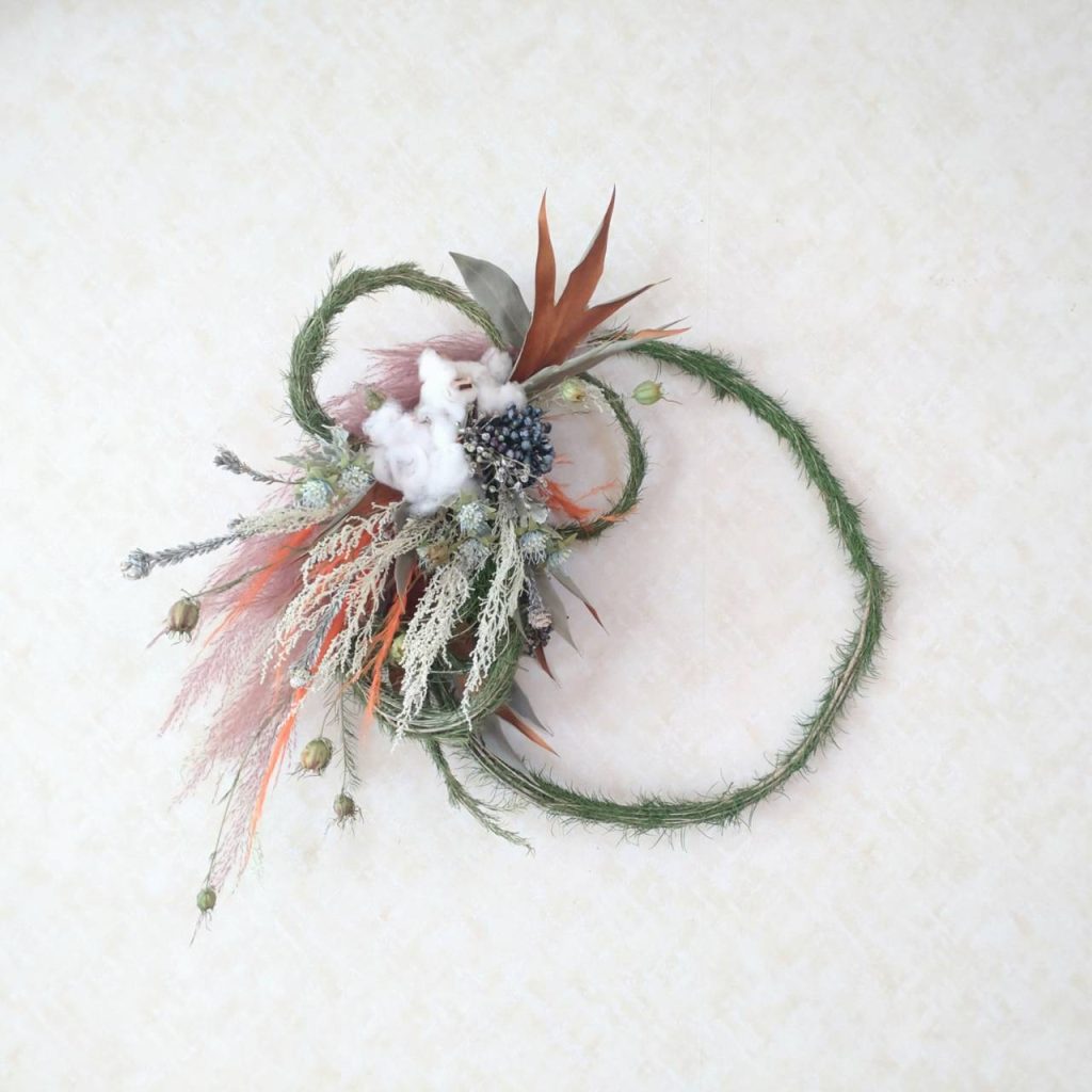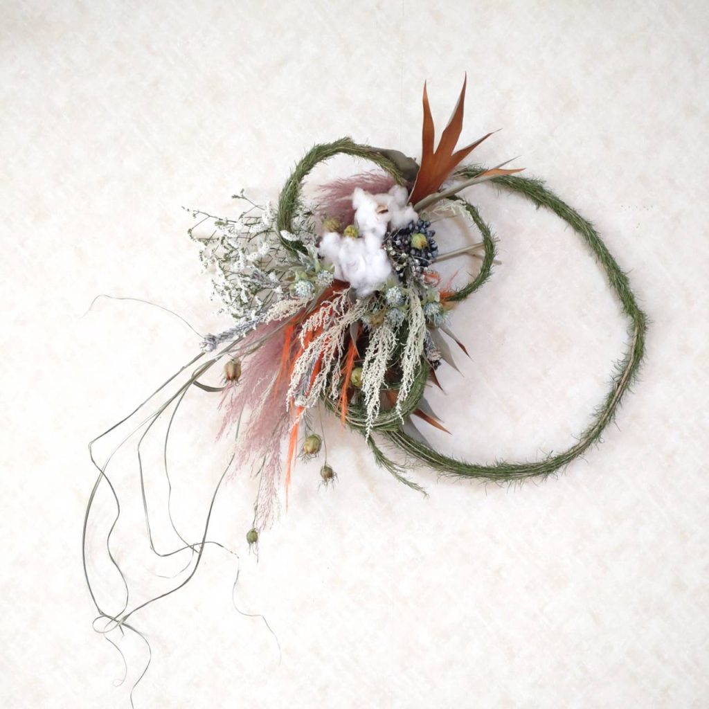 一つずつの花材の長さを変えて立体的に作成することがポイントです!